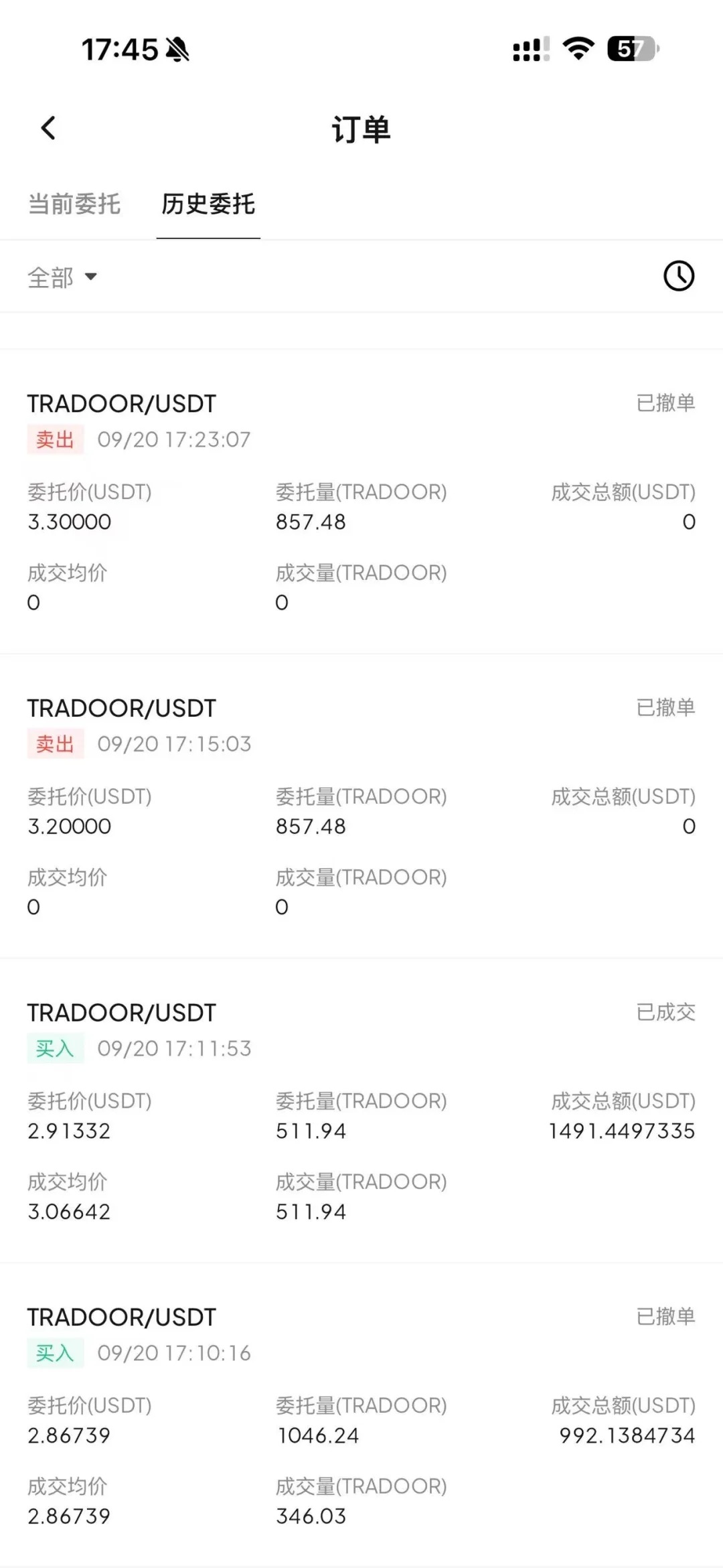 粉丝在9.20日下午五点左右买了TRADOOR现货,2500刀均价2.9刀的成交价这样,然后我看到TRADOOR涨到3.4刀左右了就准备卖了,选了全部市价卖出,我这2500刀买来的能给我砸到1.8刀成交均价,根据我的建仓成本基础下,涨了15%,被我一卖还倒亏1000刀笑死了